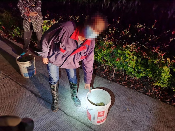 民警迅速赶到现场,喊停正在抓癞蛤蟆的两个人。经现场清点,两人非法抓获野生蟾蜍共计121只,民警出示证件后,传唤两人至派出所进行调查。