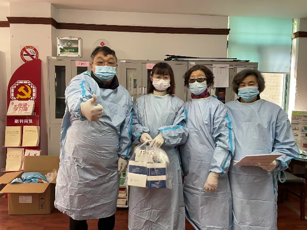 图说:束佳韵(左二)在疫情期间担任社区志愿者