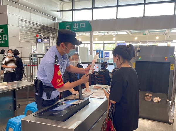 新民晚报讯 (通讯员 尹海波 孙清昕 记者 江跃中)7月1日,国家铁路局、公安部正式实施《铁路旅客禁止、限制携带和托运物品目录》,公告就危险违禁品范围作出部分调整,并对各类物品进站上车要求作出明确规定和细致补充,全方位加大对危险品、违禁品和限携带物品的查处力度,更加有利于保护列车运输和旅客人身安全。近日,上海铁路公安处昆山站派出所开展安检口法制宣传教育,民警通过实物演示的方式,利用收缴的危险违禁品,向现场来往的旅客普及携带物品新规。并根据管内阳澄湖站附近水产资源丰富的特点,对出行旅客可以用密闭容器携带鱼虾蟹类水产动物进站上车的规定进行讲解,帮助更多旅客充分了解铁路安检的新变化。