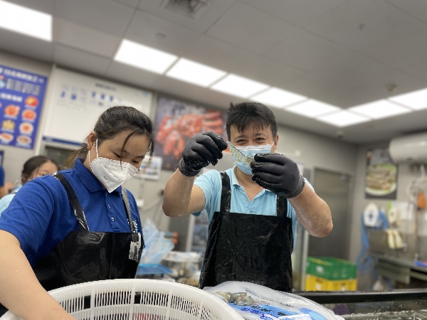 图说:第一批南美白对虾顺利“跃上”了申城市民的餐桌 采访对象供图