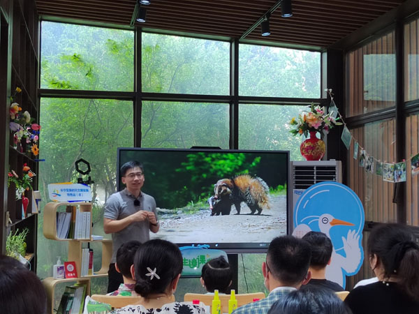 “生境课堂”第一讲邀请到了复旦大学生命科学学院80后青年研究员王放作为主讲人,课程内容为“人与自然在城市里的共存”。他用生动的语言为观众们讲述了四个故事:羚牛和猪獾、帝王蝶、0.1米的小水塘、短暂的貉危机。每一个故事都以图片解说的方式呈现,给观众带来了趣味的同时也引发了对城市自然的思考。