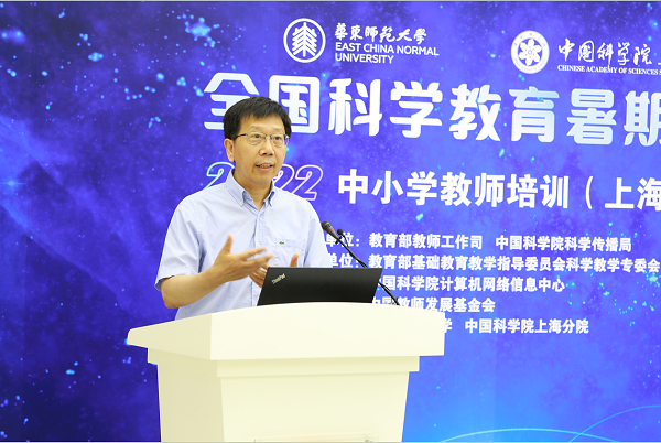 “全国科学教育暑期学校”中小学教师培训活动是由教育部教师工作司、中国科学院科学传播局共同主办的。中国工程院院士、华东师范大学校长钱旭红在致辞中说,华东师大在科学教育领域进行了广泛而深入的探索,深入社区和基础教育学校开展科学教育活动,普及科学知识与科学教育理念,改革人才培养模式和完善课程体系,探索科学精神、思维和方法培养的新路径。