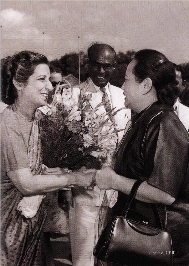 1956年宋庆龄在北京接待外宾时,梳着她喜爱的发髻款式