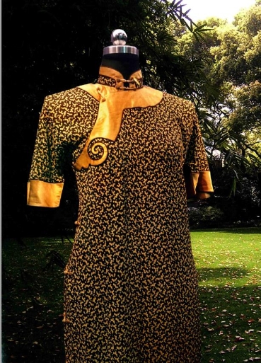 宋庆龄钟爱的黄黑杂花真丝长旗袍