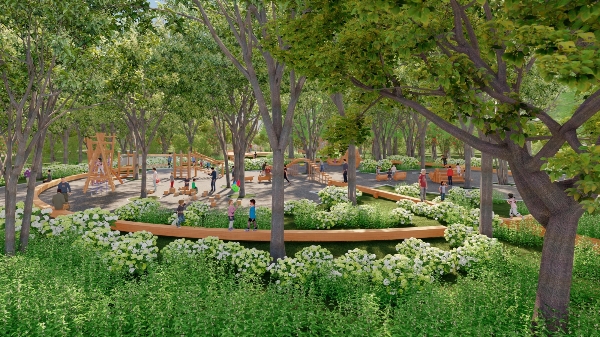 宝山丰翔智秀公园:市民提出以打造生态基底为基础,满足娱乐休闲需求、加入露营等当下流行的活动场地。设计方转变了最初打造科技秀场设计方向,置入森林剧场、拓展营地、桥下空间、休闲散步道、森林茶室等场所及户外活动场地,满足游客假日休闲、亲近自然、互动分享的愿望。
