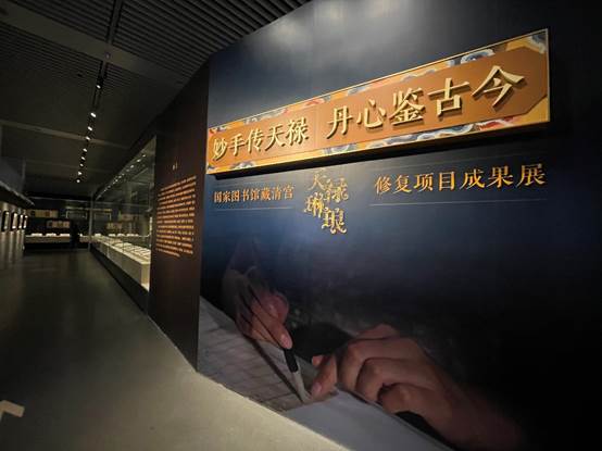 中国自古就有通过曝书(晒书)以保护典籍的优良传统。“妙手传天禄 丹心鉴古今——国家图书馆藏清宫‘天禄琳琅’修复项目成果展”是2022年国家图书馆“晒书”的重要活动之一,既晒国宝又晒技艺,共分为“天禄零楮 册府重光”“精具利器 匠心良材”“妙手巧艺 古书回春”三个单元。“天禄零楮 册府重光”单元中系统讲述了“天禄琳琅”藏书前编书的形成与损毁经历,图文并茂地呈现“天禄琳琅”后编书的重建背景、外形和钤印特点,以及“文物南迁”“溥仪盗书”等聚散流转故事;梳理国图馆藏“天禄琳琅”珍本书籍基本情况、破损状况及编目整理工作,强调了其抢救性修复的必要性与迫切性。“精具利器 匠心良材”单元重点展示了国家图书馆藏清宫“天禄琳琅”修复项目的实施过程,简要概括了国家图书馆数代古籍修复工作的经验积累所奠定的坚实基础,具体介绍了参与本次项目的修复团队,以及修复原则、流程、材料、设备、工具等内容。“妙手巧艺 古书回春”单元则精选“天禄琳琅”修复项目的具体实例,通过修复前后对比展示修复成果,并延伸介绍本次修复涉及古籍的不同破损类别,如絮化、霉蚀、酸化、虫蛀、粘连、缺损等等。