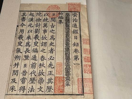 此次展览展出善本、普通古籍、中外文现代图书、报纸、档案复制件等不同类型展品共计72种85册(件),其中有一部分为天禄琳琅旧藏的珍贵古籍,大多是经过修复师用不同修复技法修复的曾经严重破损、不同破损类型的天禄珍籍,另配合展出修复过程中精心制作、选配的材料和工具等48种,让观众不但能观赏重要典籍,同时可以了解大国工匠的划时代技艺。重点展出的珍贵古籍有清乾隆内府抄本《钦定天禄琳琅书目十卷》,该本详细著录每部书的版本、钤印、卷册等情况,为一部完备的清宫善本书目;宋绍兴二年至三年(1132—1133)两浙东路茶盐司公使库刻本《资治通鉴二百九十四卷目录三十卷》,赵万里主编《中国版刻图录》对此本曾评价:“宋时建本、鄂本、蜀本都直接间接从此本出。此书元丰监本久佚,此为硕果仅存之第一本。”;宋绍定六年(1233)临江军学刻本《朱文公校昌黎先生集四十卷》,经文徵明、王世懋、季振宜等明清藏书名家递藏,世所罕见,具有极高的文献和版本价值;元大德九年(1305)太平路儒学刻本《汉书一百卷》版本珍贵,但之前地脚处书叶、衬纸纸张表面生有大量霉斑,并存在泥渍、糟朽、残损等,修复后方能一睹真容,充分体现了修复人员化腐朽为神奇的力量;明成化九年(1473)内府刻本《资治通鉴纲目五十九卷》,由朱熹手定其纲、朱熹门人赵师渊撰写其目,因该本原瓷青绢质书衣破损面积大,故采用了补绢仿制与染色、做旧等修复方法,呈现出补绢与原书衣高度匹配的自然老化效果,非常适合观众现场感受“整旧如旧”的古籍修复原则。