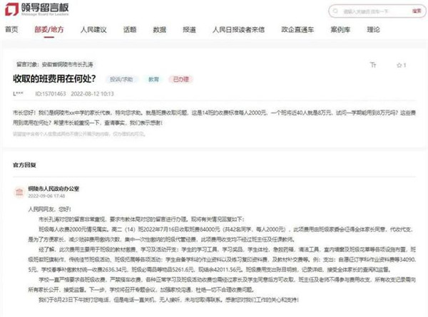 近日,安徽铜陵有网友称,孩子所在班级收取高额“班费”,每人2000元,一个班40人,总额高达8万元。铜陵市相关部门回应:此项费用由班级家委会征得全体家长同意,代收代支,是为了方便家长,减少琐碎费用缴纳次数,集中一次性缴纳的班级代管经费,此项费用收支均不经过班主任及任课教师。