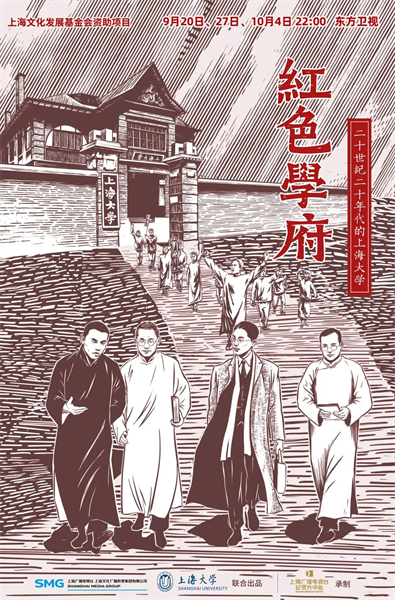 今年是上海大学成立100周年,从今晚起,六集系列纪录片《红色学府——20世纪20年代的上海大学》将于每周二22:00在东方卫视播出。该片分为《上青云》《入洪流》《在天涯》三个篇章,从追求真理、革命实践、牺牲奋斗三个层面讲述20世纪20年代的上海大学的历史,体现这所红色学府传承百年的革命精神,并通过上海大学这所高校的历史,展现上海这座城市生生不息的红色血脉。