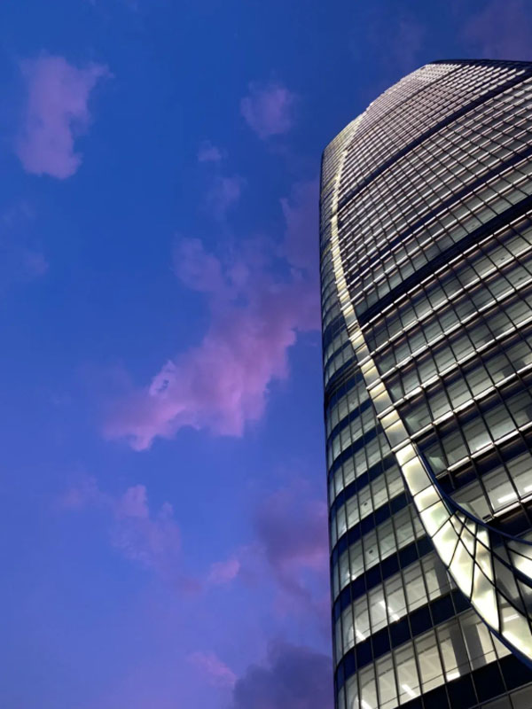 二期星瀚广场由办公楼、商业楼、星幕舞台空间等构成。涵盖60米、100米及2幢24米的办公楼,5栋商业楼及包含星幕在内的大型户外空间。整个空间以“星”“汇”为核心概念,“星”作为聚集效应的中心点活跃于周边社区中。“汇” 意在通过多层次多高度的布置创造丰富的公共空间。办公楼通过立面切分和平台空间的组合,使内部不同区域拥有最大化的开阔视野,同时彰显统一而多变的立面外观。星瀚广场以具有迎客姿态的入口广场与斜屋面造型,建成后将为城市提供公共休闲活动的重要目的地。