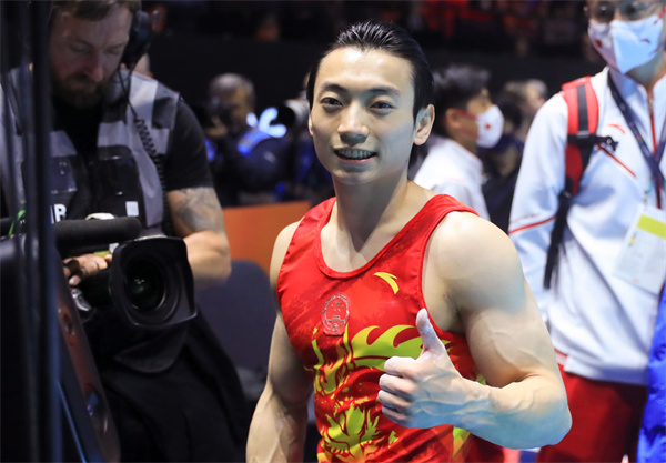 图说:邹敬园夺得男子双杠冠军 新华社图(下同)