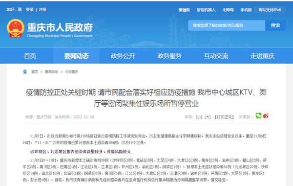 ①涉疫区县的KTV、舞厅等密闭聚集性娱乐场所,要按照市、区两级疫情防控指挥部相关疫情防控要求执行;中心城区各区的KTV、舞厅等密闭聚集性娱乐场所,已按照市、区两级疫情防控指挥部的相关要求暂停营业,暂停时长将视疫情发展情况研判确定,如果市民发现中心城区相关KTV、舞厅等密闭聚集性娱乐场所未按疫情防控要求关停到位的,欢迎大家举报。