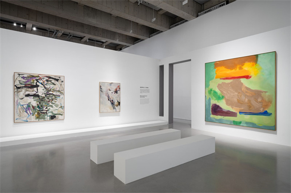 在西岸美术馆此次展览上,弗兰肯塔勒与美国画家琼·米切尔的作品在一个展厅中对话。琼·米切尔是当下艺术市场的热门人物,她首先在20世纪50年代纽约男性主导的抽象表现主义圈子里获得了好评和成功,然后在法国花了30多年时间创作了独特的抽象画,这些画充满了能量和色彩,并借鉴了风景、记忆、诗歌和音乐。