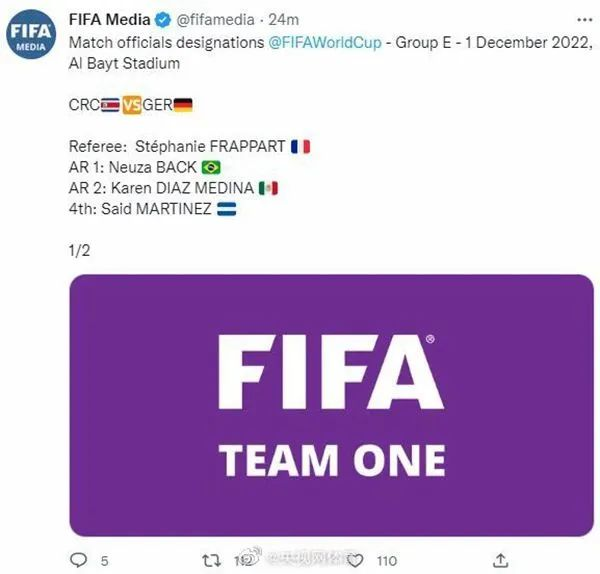图说:国际足联官宣德国与哥斯达黎加比赛裁判