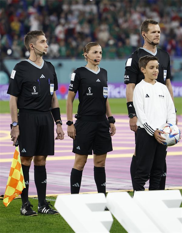 共有6名女裁判入选卡塔尔世界杯的裁判名单,她们分别是主裁判斯蒂芬妮·弗拉帕尔(法国)、萨利玛·穆坎桑加(卢旺达)和山下良美(日本),以及助理裁判纽萨·巴克(巴西)、卡伦·迪亚斯(墨西哥)和凯瑟琳·内斯比特(美国)。德国与哥斯达黎加的世界杯末轮小组赛,弗拉帕尔搭档巴克和迪亚斯,组成全女性裁判组。