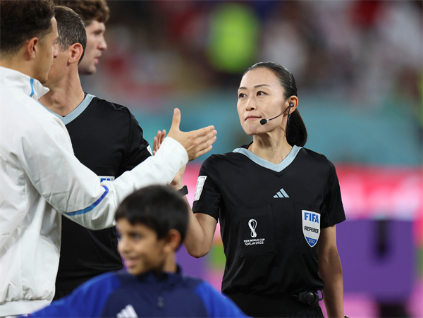 图说:日本女裁判山下良美在本届世界杯上 新华社图