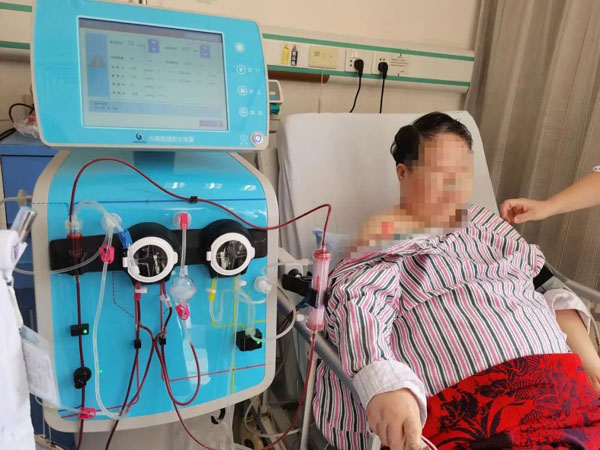 吴阿姨正在做超滤脱水治疗