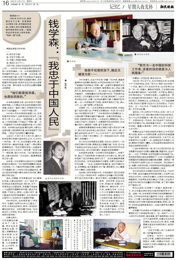 “我忠于中国人民!”这是钱学森一生的誓言和实践。