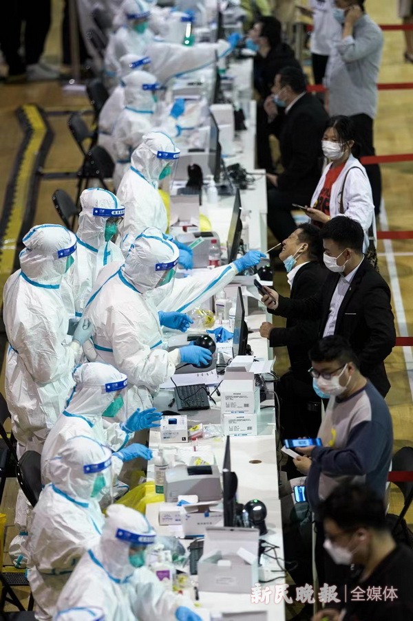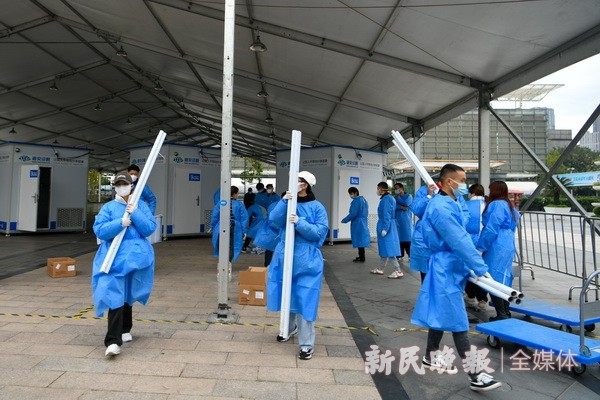 2022年3月14日,卢湾体育馆被改造成临时核酸检测点。