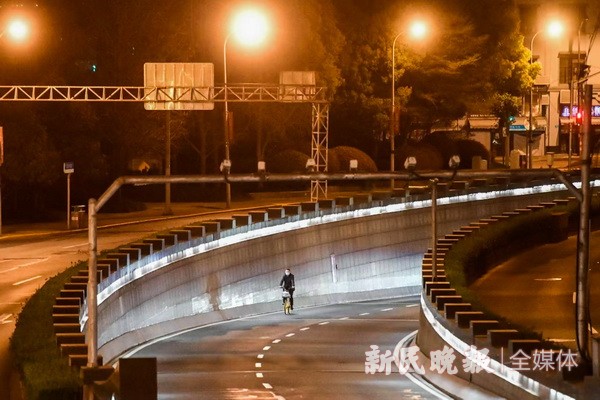 2022年3月28日,距离浦东静态管理还有15分钟,一男子骑着共享单车,出现在延安东路隧道浦西出口。