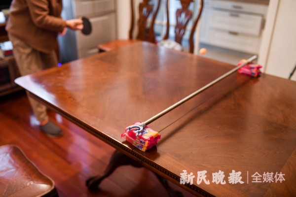 2022年4月2日,楼栋封控第6天,4块肥皂和1根衣叉杆能把餐桌变成乒乓桌。