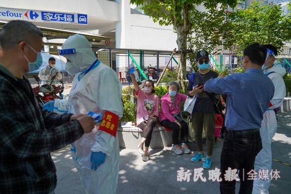 2022年5月4日,普陀区,一些居民拿到了出门证。