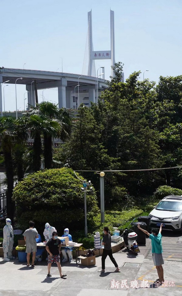 2022年5月10日,黄浦区,居民陆续下楼进行核酸检测。
