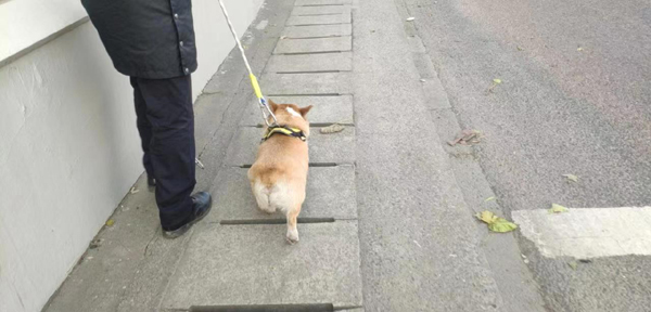12月17日下午,松江公安分局交警支队接到市民报警称,行车途中发现一只柯基犬在沪杭高速莘砖匝道附近奔跑,穿梭在车流中非常危险。接报后,民警池永国和辅警立即赶赴上述地址找到了这只柯基犬。当时,它在路基上。为了避免它受惊跑上主车道引发交通事故,两人一直跟在其后面步行近5公里,直到收费站才开始准备捕捉措施。