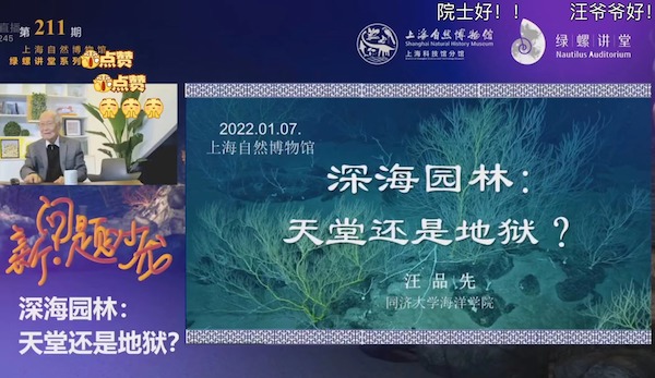 在科学家眼中,深海生物的独特生活方式令人好奇,而探索深海更珍贵的价值在于,数千米的海底藏着地球内部的秘密。昨天,海洋地质学家、同济大学教授、中国科学院院士汪品先和同济大学海洋与地球科学学院副教授党皓文做客上海自然博物馆(上海科技馆分馆)“绿螺讲堂”,以“深海园林——天堂还是地狱”为题在云端开讲。
