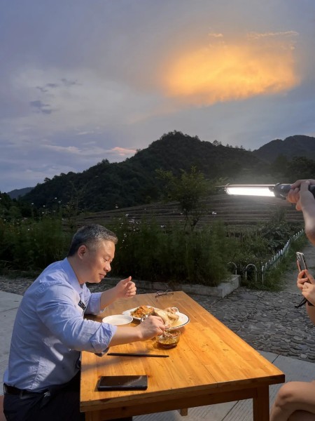 唯一能做的就是拼命,别人用3个月学会的,他的团队要用1个月就学会。到山上拍短视频,为了拍到山里的云雾,早晨4点就起床,5点开车到山上。在户外直播,每天播3场,全是杨木旺亲自播,每播完一场,人就瘫了,露天躺在小伙伴们给他准备的躺椅上休息一会儿,休息好了再接着播。天降大雪,为了拍得带感,他在雪地里喝鸡汤。