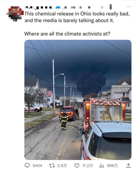 “这起发生在俄亥俄州的化学物质泄漏事件看起来很糟糕,但媒体几乎没有谈论它。环保人士在哪里?”
