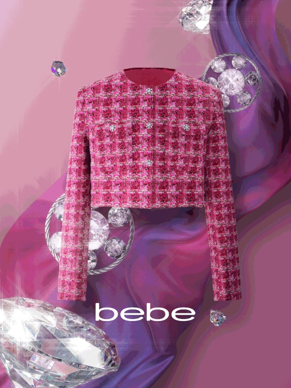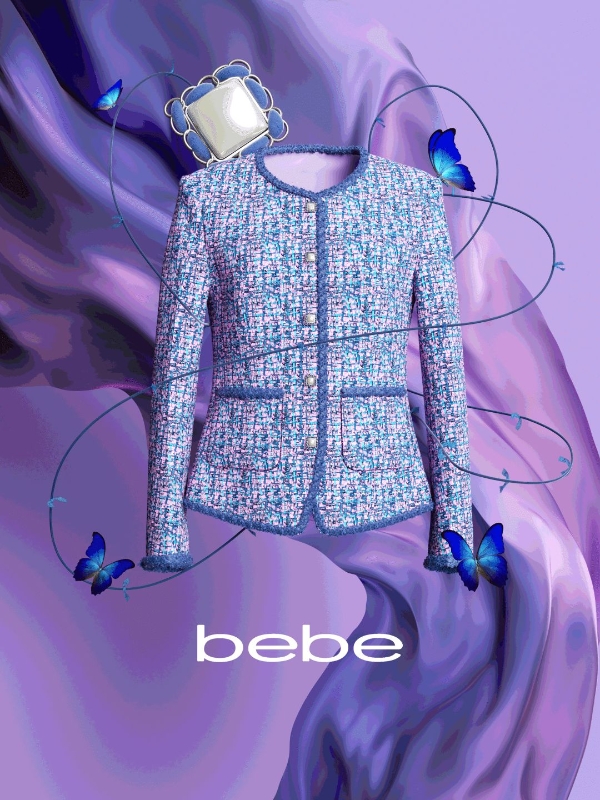 2023年2月,bebe发布全新花纱系列,汲“花”的绚烂斑斓,取“纱”的饱满肌理,系列凭借自由设计、缤纷色彩和匠心工艺火速“出圈”。成衣去繁就简,利落版型,不失柔和细节,让大气优雅的女性韵味中多了一份新鲜的美式活力。不局限于粗羊毛的现代粗花呢,该系列纱线色彩明亮,材质各不相同,辅以亮片与金银线,为整体造型赋予了别致趣味。就连衔接处的纽扣也极为考究,从压胚、抛光、挂镀再到晾干,层层工序保证了纽扣基底的光滑圆润和色牢度。