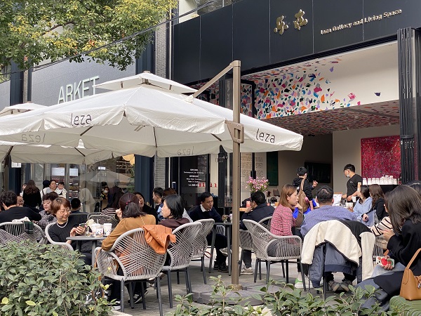图说:在新天地,沿街咖啡馆的外摆位坐满了顾客 新民晚报记者 张钰芸/摄(下同)