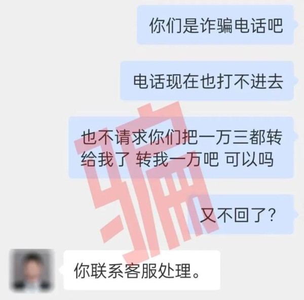 告知“客服”自己没钱了