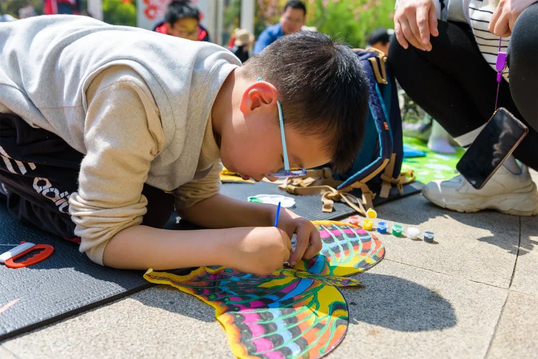 传统的手工风筝制作有四大技艺:"扎、糊、绘、放",每个步骤都需要耐心和技巧。记者发现现场扎骨架等制作工序已经提前完成,孩子们只需要在风筝上用颜料涂上喜欢的色彩,就可以绘制出属于自己的风筝。