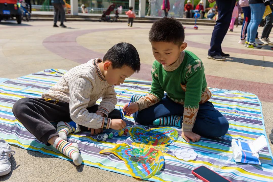 无论是红、蓝还是黄色,小朋友和家长们坐在地垫上,手持笔刷,认真地为风筝涂上色彩。他们一边交流着画风筝的心得,一边享受着和家人一起创造的乐趣。渐渐地,一个个精美的风筝在他们的手中诞生了,孩子们兴奋地拉着风筝线,看着自己亲手制作的风筝在春风中迎风飞翔。“你看,风筝飞起来啦!”他们喊道。