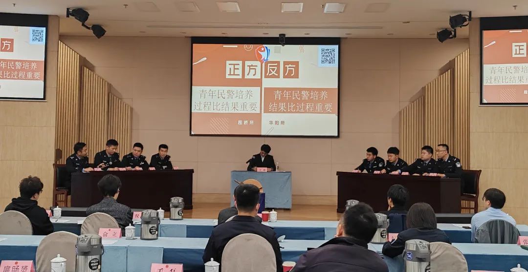 “青年民警培养过程和结果到底哪个更重要?”面对犀利的辩题,来自程家桥派出所和华阳路派出所的辩论队展开了激烈的“对决”。活动现场,民警们围绕辩题深入思考,旁征博引,辩论内容既有广度也有深度,不仅辩论条理清晰,而且逻辑层层递进,内容发人深省,精彩的辩论赢得台下观众的阵阵掌声。