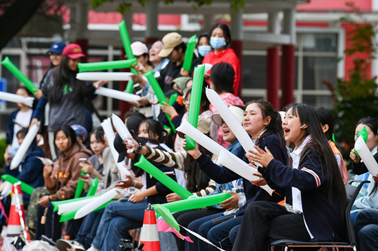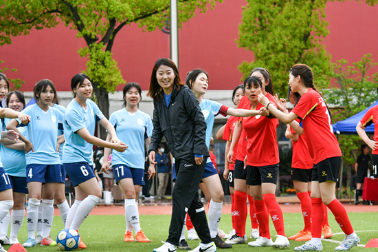 足球是上海健康医学院附属卫生学校最受欢迎的运动项目之一,为了参加这次联谊赛,四支队伍都起了好听的名字,由上海班男生组成的“绿茵逐梦”队、由云南班男生组成的“七彩云滇”队、由上海班女生组成的“沪小囡”队,以及由西藏班女生组成的“藏木兰”队。赛前,刘洁茹和缪斯雯将上海女足的技能训练带到现场,指导学生练习脚下功夫,每一名队员都感到收获颇丰。听闻有比赛,不少学生来到现场,场边热闹非凡。现场,刘洁茹和缪斯雯向上海健康医学院党委副书记、副校长唐红梅跷起大拇指,夸赞校园足球的氛围好。