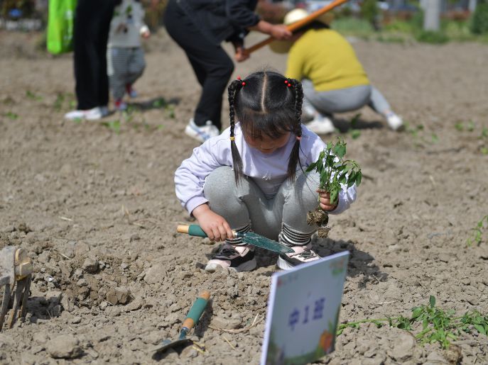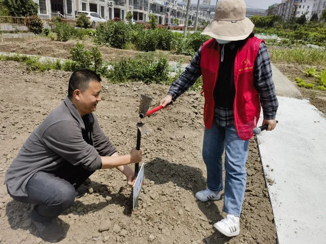 品春耕之趣,享播种之乐。在党员志愿者的指导下,小朋友们拿起铁锹、钉耙,一起翻地、松土,干劲十足。一洼洼空地,翻出一道道沟,把小苗小心翼翼地种下去,同时播种下心中对未来美好的期盼。