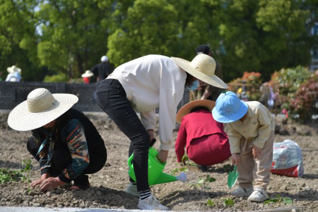 大朋友小朋友纷纷走进大自然,在西渡街道灯塔村15组的樱花里农场开展了一场“蔬”香伴成长结对心连心活动。上海市农业科学院园艺所提供了茄子、辣椒、紫甘蓝、白菜等秧苗。