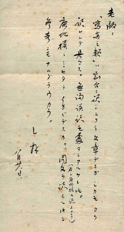 鹿地亘家书“附件”,鲁迅(L)致内山完造(老版)亲笔日文书札
