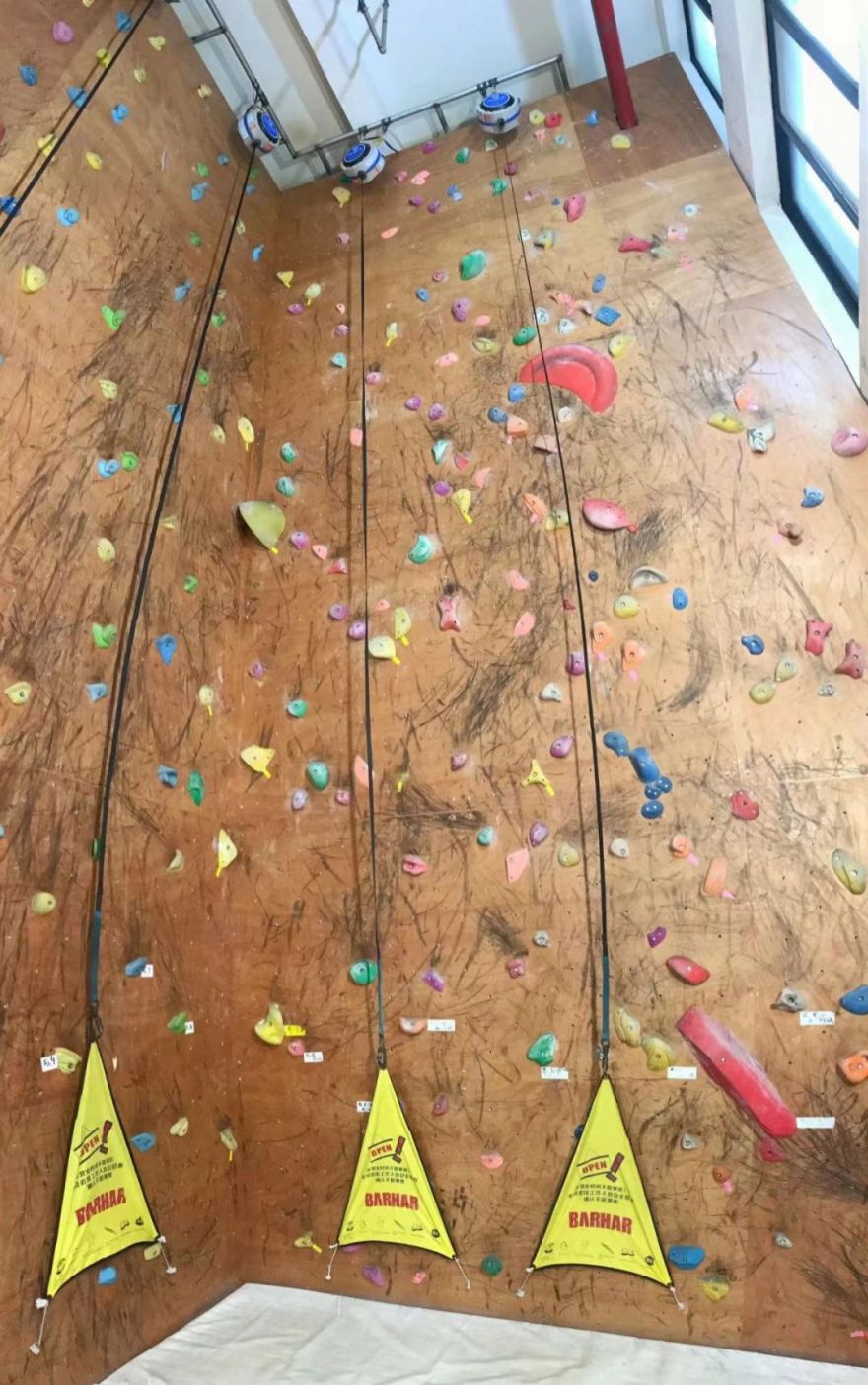 高度区配备了4台进口自动保护器,设置了约10条难度线路,难度系数涵盖5.7-5.11,是许多初学者和小朋友的阵地。