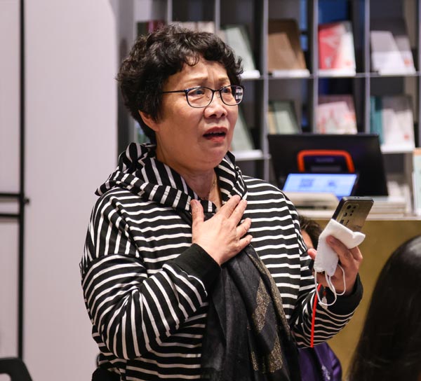 赵丽宏现场讲述的《火光》的创作故事感动了读者。“我是69届的,您讲的那些我太有感触了。我不太善于在那么多人面前说话,我不知道怎么表达我内心的情感,我就想在这里把您写的那首《火光》读给大家听,作为一种感谢。”互动中,有读者声情并茂地朗诵《火光》,她的朗诵融入了情感,抑扬顿挫中,赵丽宏也情不自禁地跟着一起吟诵,大家完全沉浸在诗歌的魅力中。“在你的朗诵中,我好像想起在乡下写这首诗的情景,这就是共鸣。”赵丽宏说。