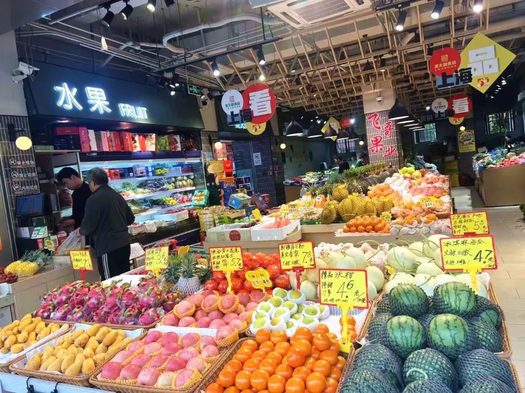 上午9点,美天新渔菜市场的水果摊位前,由西瓜、甜瓜、蜜瓜等多个品种组成的“瓜果天团”占据了显眼的位置,吸引了不少市民前来选购。