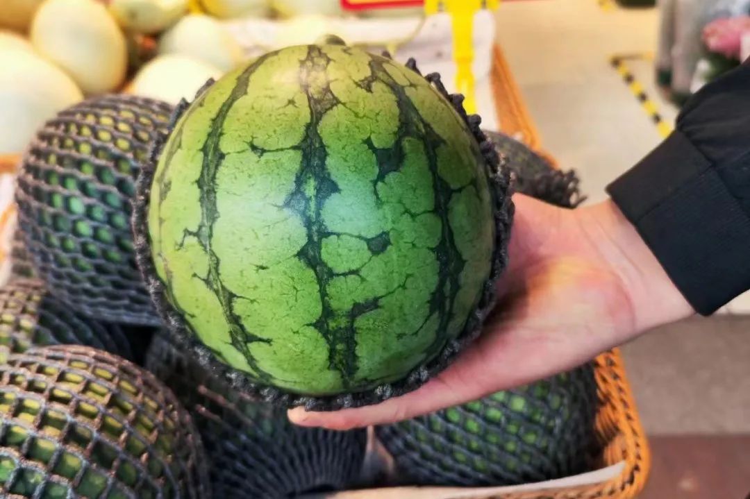 据水果摊主介绍,朱先生购买的是冰淇淋西瓜,也是近几年来比较受欢迎的新品种,有上市早、个头小、瓜皮薄、汁水充盈等特点,“都是头茬瓜,别看个头小,保熟!”