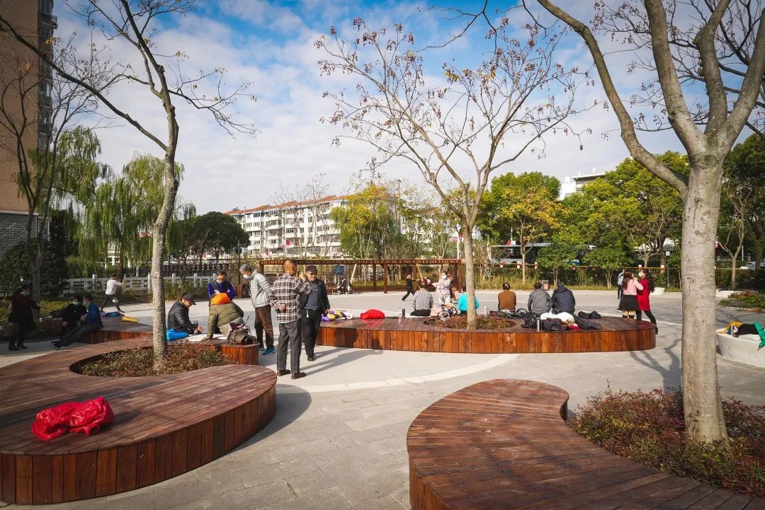 园中还融入世博文化元素,保留原有的2010世博雕塑,新增世博景墙和吉祥物海宝等世博元素小品,同时利用景观亭原有结构,添加新中式元素,并在园中添加智能座椅、“聆听自然声音”的互动装置,满足周边市民赏游、交流的需求。场地内原有四个花坛合并成两个,种植以八仙花为主的耐阴花境,营造树影如画、花团锦簇的美好风景。
