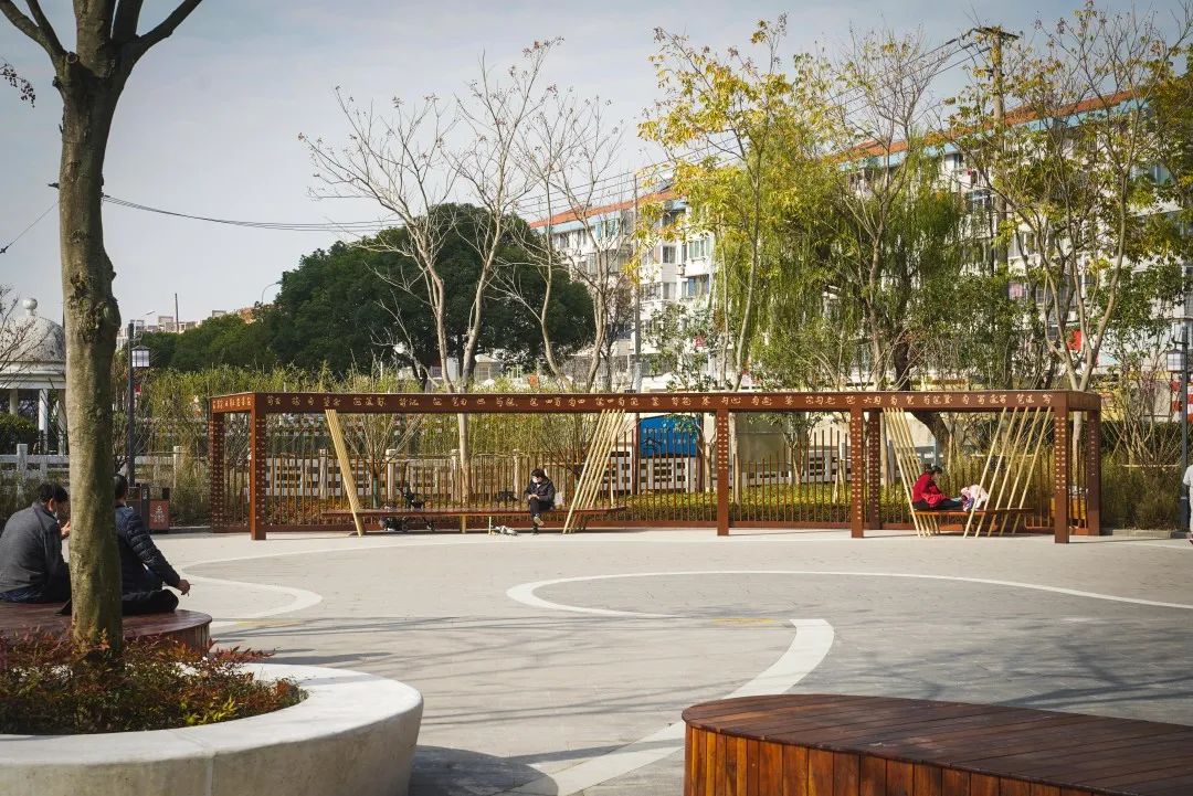 改造后的口袋公园以中国古代五音“宫商角徵羽”为主题,在保留古风特色的基础上配合现代元素,将二者巧妙融合,融入了健康及养生主题。通过园林设计柔化公园的硬质线条,如今的古乐园将传统文化元素串联于整个中式园林之中。