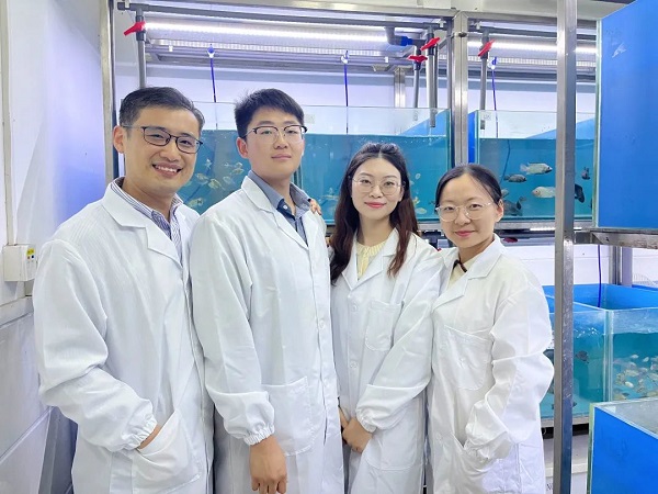 图说:“鲤鱼跃龙门”研究团队,杨嘉龙教授、博士研究生李康、硕士研究生焦新迎、韦秀梅副教授