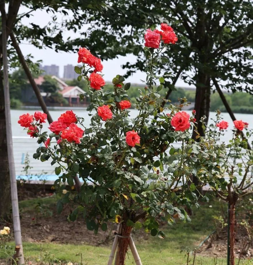 树状月季高度在0.6-1.3米不等。准确来说,树状月季不能算是一个种类,因为它是是用粗壮的蔷薇作树干,自月季中优选直立性较好、树冠匀称的品种嫁接成枝的树木。树状月季的花冠比一般花卉离地面远,不容易感染土壤病虫害,适应性强。