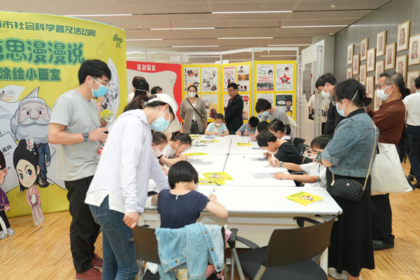 在呈现形式上,“动感+潮流”成为本次市集的一大亮点。所有活动或可动手制作,或可亲身体验,把枯燥艰深的社会科学知识,表达呈现为新潮好玩的音像、漫画、游戏、装置、画室、工坊等形式,让观众从“坐着听”“静静看”到“动起来”,与社科知识和城市文化“亲密接触”。还有融合二次元文化和国潮元素的漫画书、动画片等原创知识科普作品,吸引了众多年轻观众。
